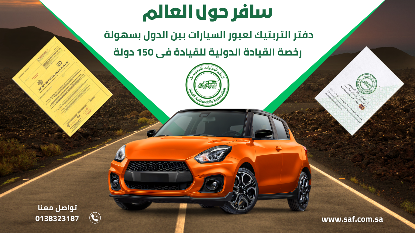 سافر معنا حول العالم وتمتع بقيادة امنه وقانونية بالحصول على رخصة القيادة الدولية وتنقل عبر الحدود بسياراتك بسهوله بالحصول على دفتر العبور الجمركى تربتيك...