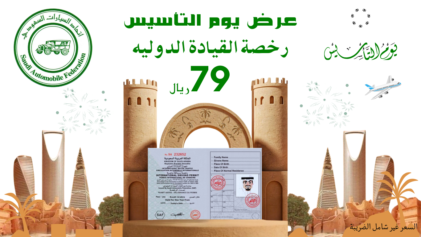 احتفالًا بيوم التأسيس، نقدم لكم رخصة القيادة الدولية بسعر مميز 79 ريال فقط! 🚗💳